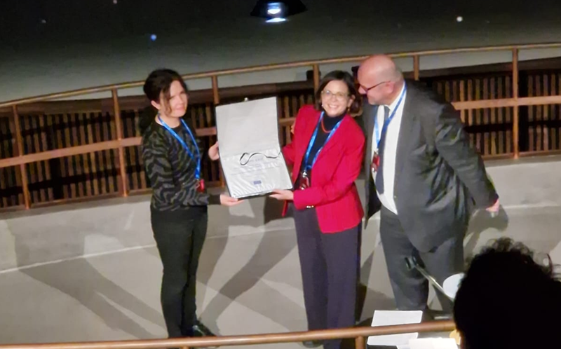Vania Virgili, directrice générale d’E-RIHS ERIC, a accepté la plaque au nom de la communauté toute entière, rejointe par Polonca Ropret, chair du comité des nœuds nationaux.
